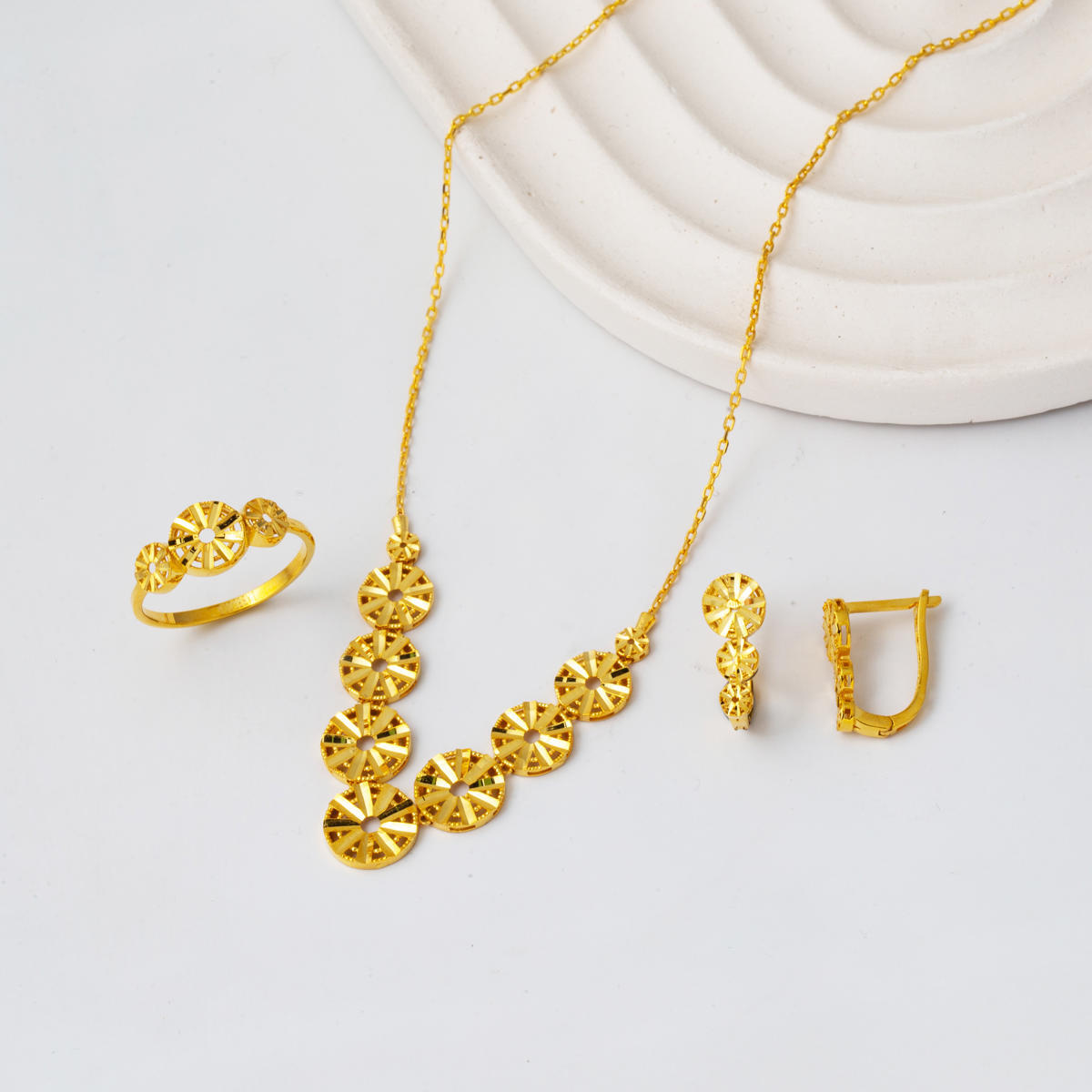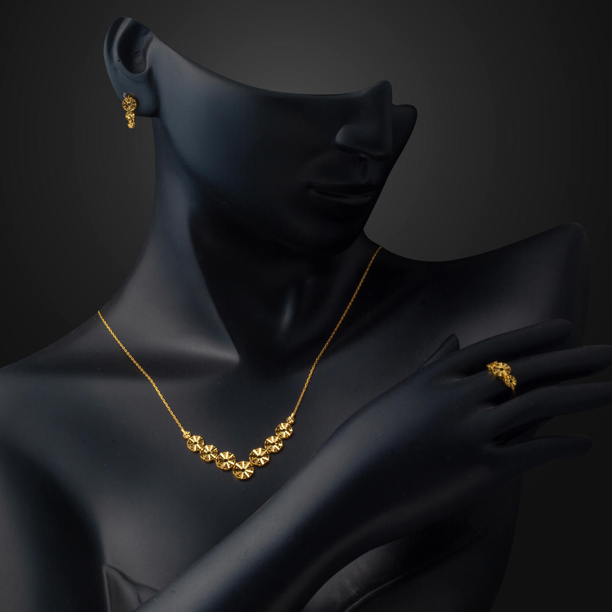 Zarafet ve Yatırımın Kusursuz Buluşması: Kolye, bileklik ve küpeden oluşan 22 ayar mini altın setimiz, hem özel günlerde hem de günlük kullanımda şıklığınızı tamamlayacak mükemmel bir seçimdir. 45 cm uzunluğundaki zarif zinciriyle her kombine uyum sağlayan bu set, sade ama etkileyici bir stil sunar. Yüzük boyu tercihinize göre belirlenebilir, dilerseniz bizimle iletişime geçerek en uygun boyutu seçebilirsiniz.