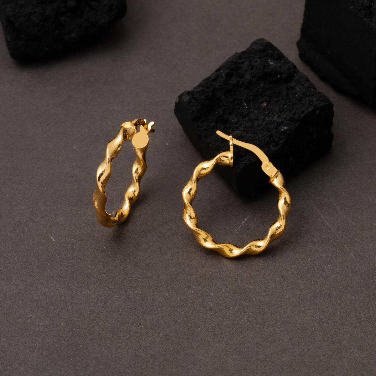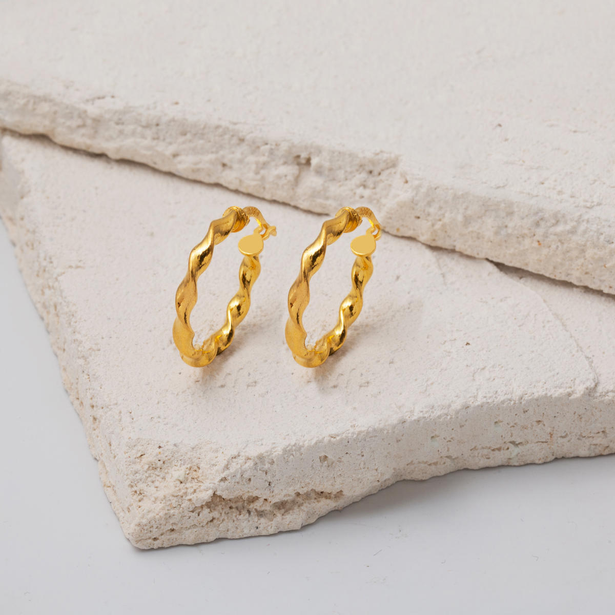 22 Ayar Modern Burgulu Halka Altın Küpe