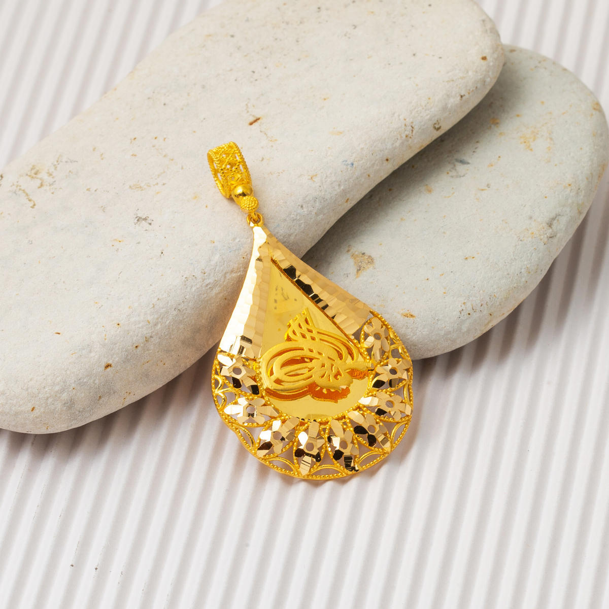 Tuğralı kolye uçlarımız, 8, 14 ve 22 ayar altın kullanılarak üretilmekte olup, ayar farkı görünümde herhangi bir değişikliğe sebep olmaz. Her biri aynı zarafeti ve estetik duruşu sergileyen bu kolyeler, hem günlük kullanım hem de özel günlerde şıklığınıza şıklık katmak için idealdir. Dilerseniz, müşteri hizmetlerimizle iletişime geçerek tuğralı kolyenizi zincirli olarak da sipariş verebilirsiniz.