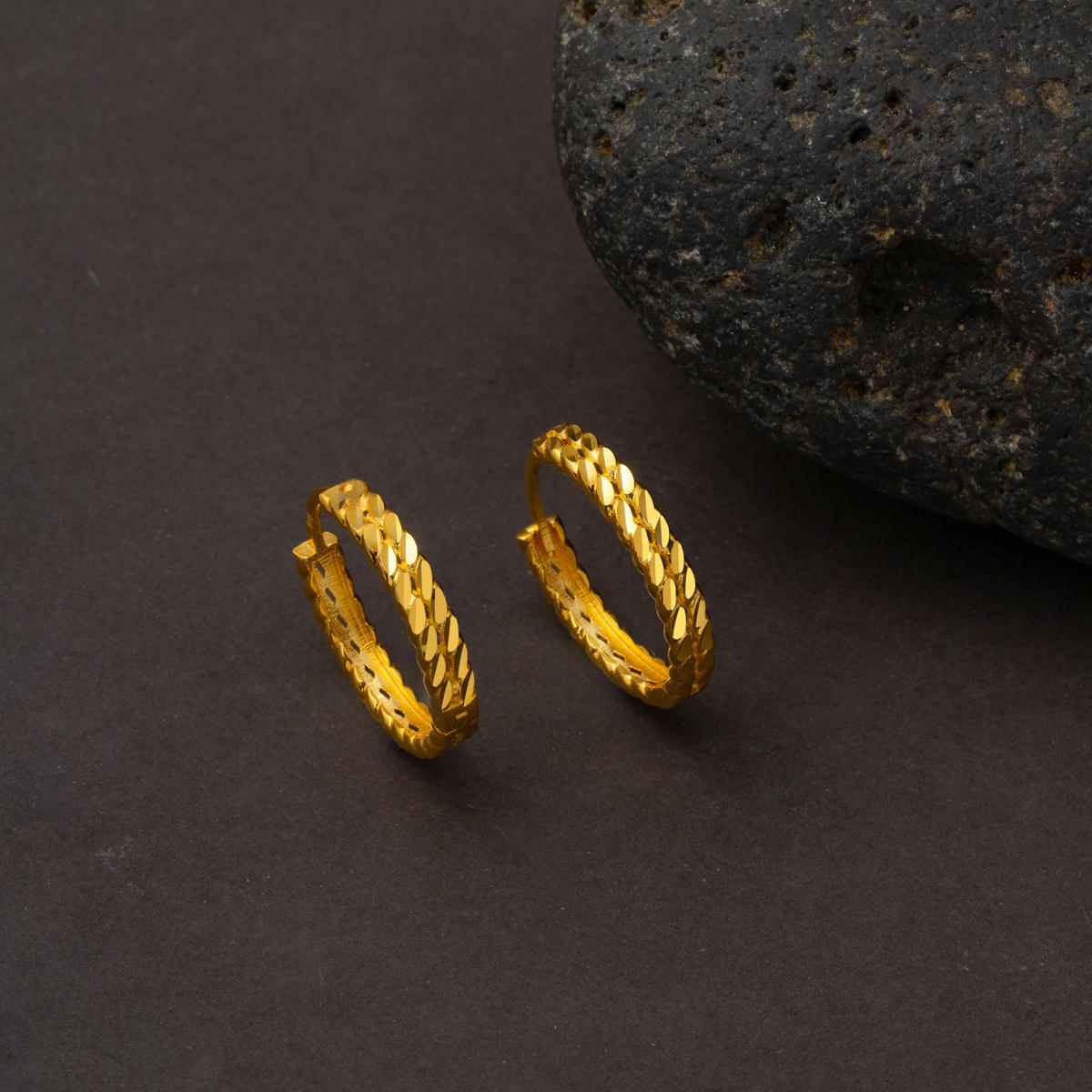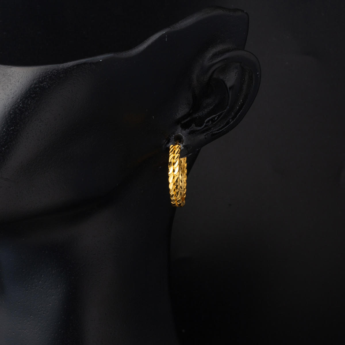 Burmalı 22 Ayar Altın Halka Küpe Büyük Boy