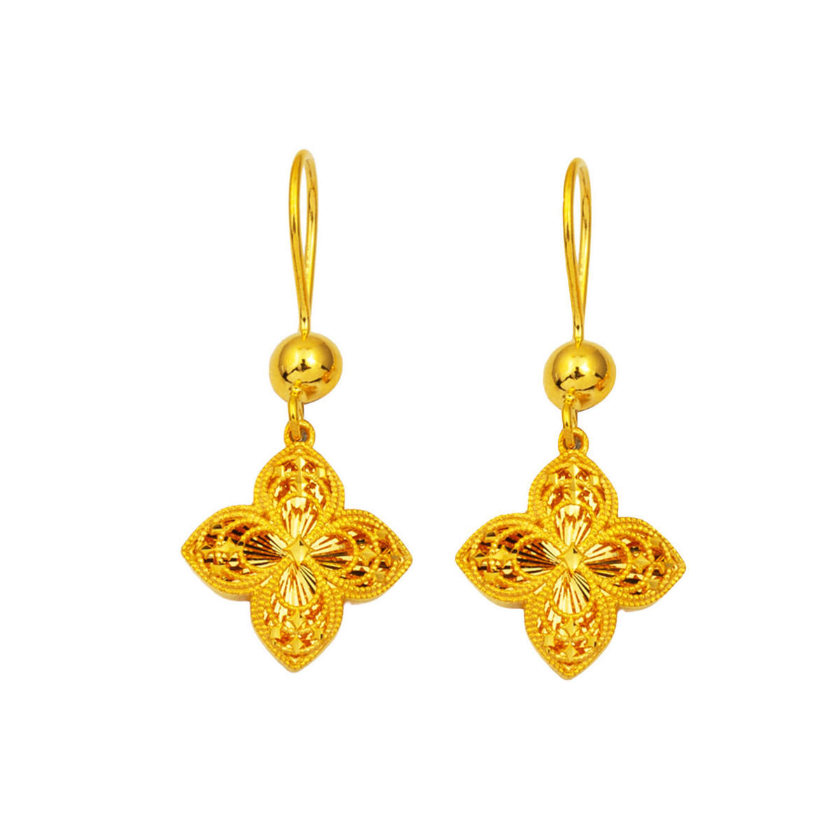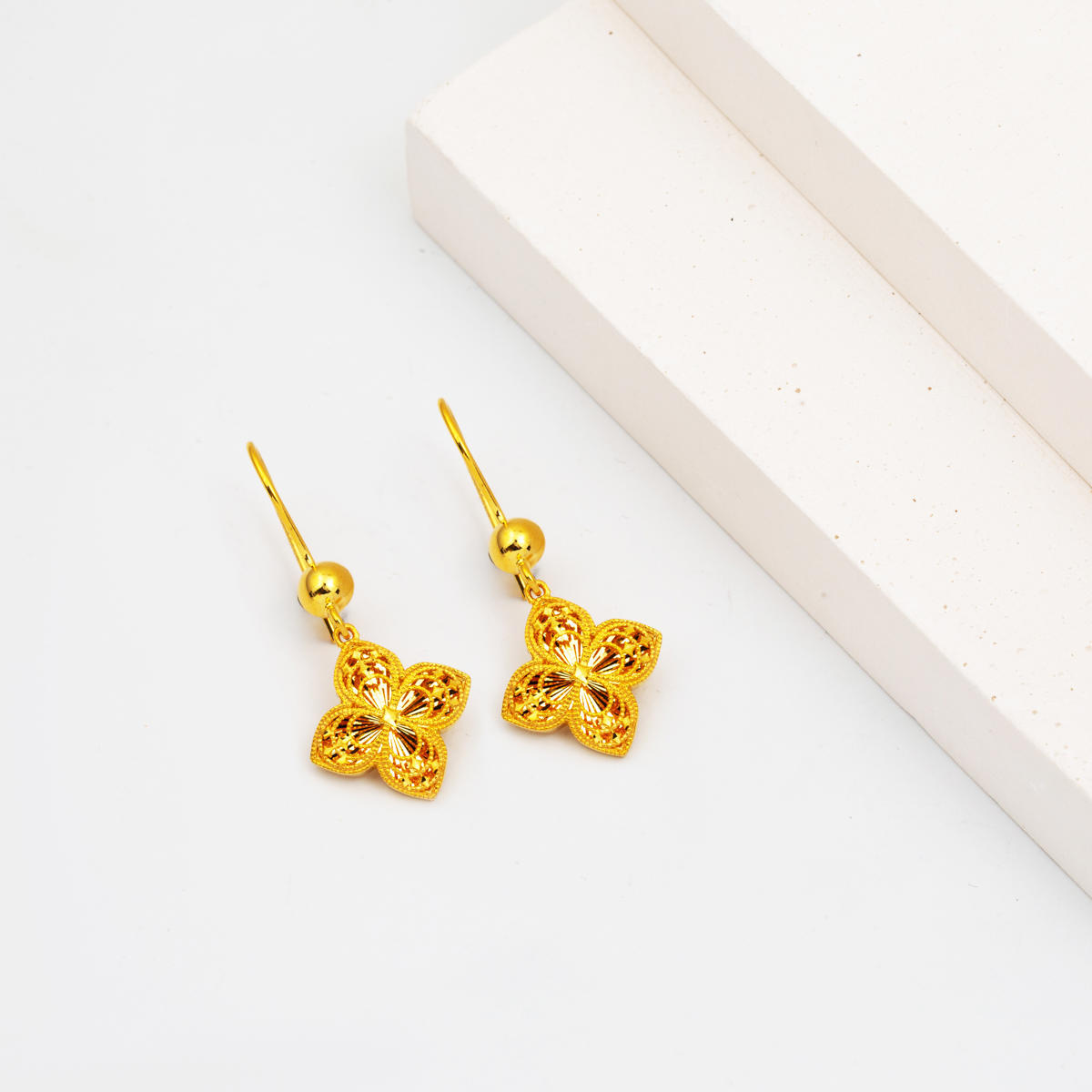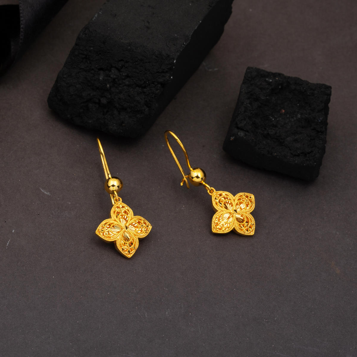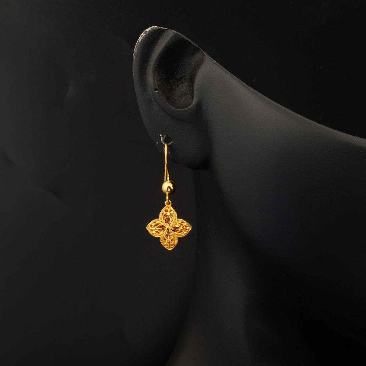 İşlemeli Zambak 22 Ayar Sallantılı Altın Küpe