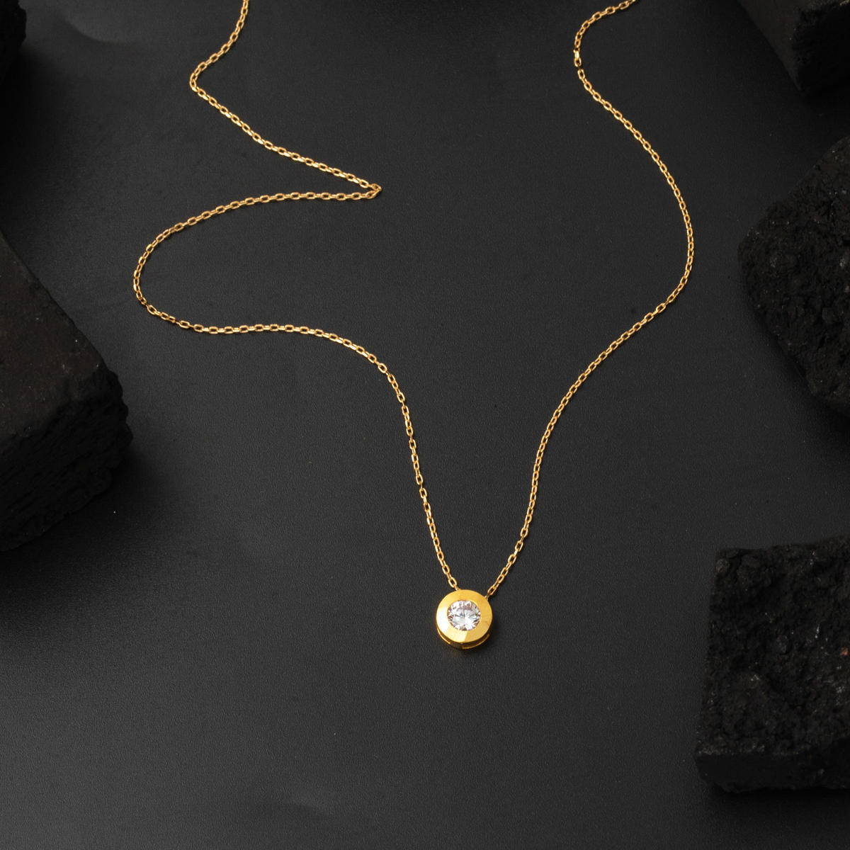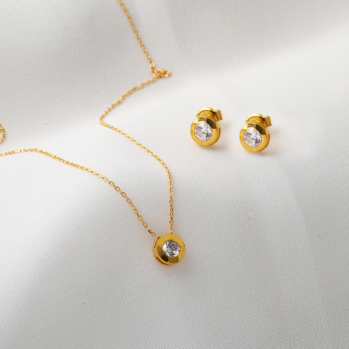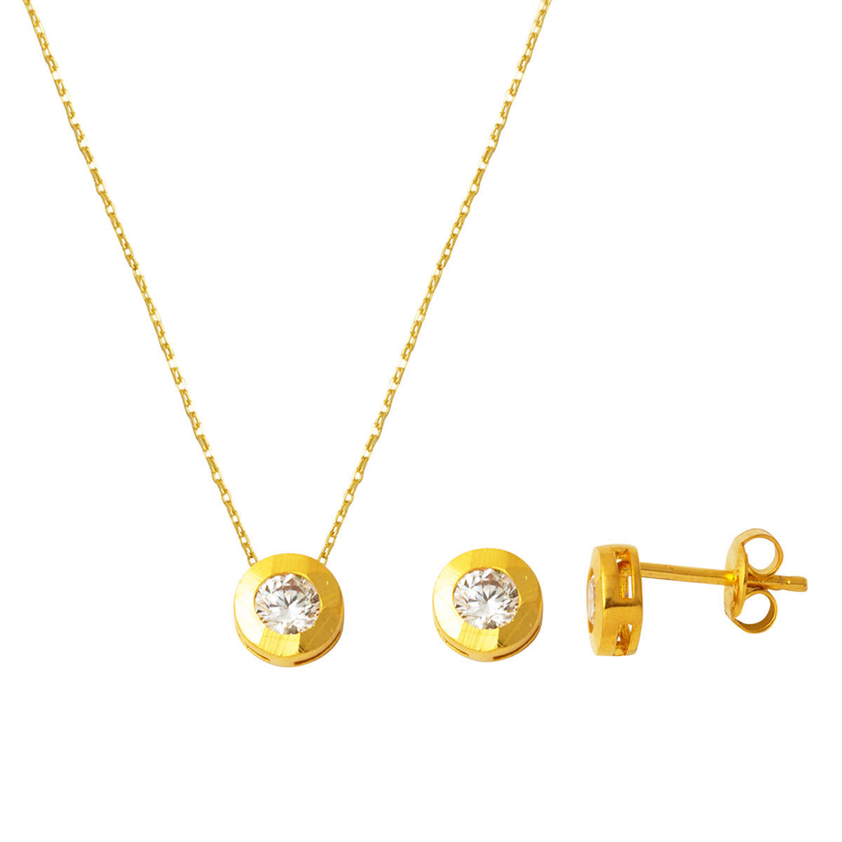 Tek Taşlı Kolye Küpeli 22 Ayar Altın Takı Seti
