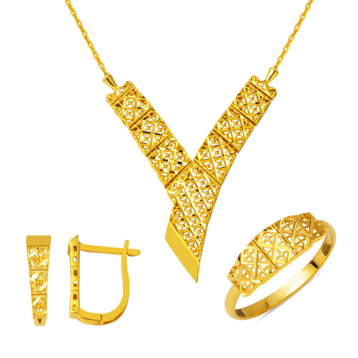 Yaprak Model Mini 22 Ayar Altın Takı Seti - Bilezikçi %19