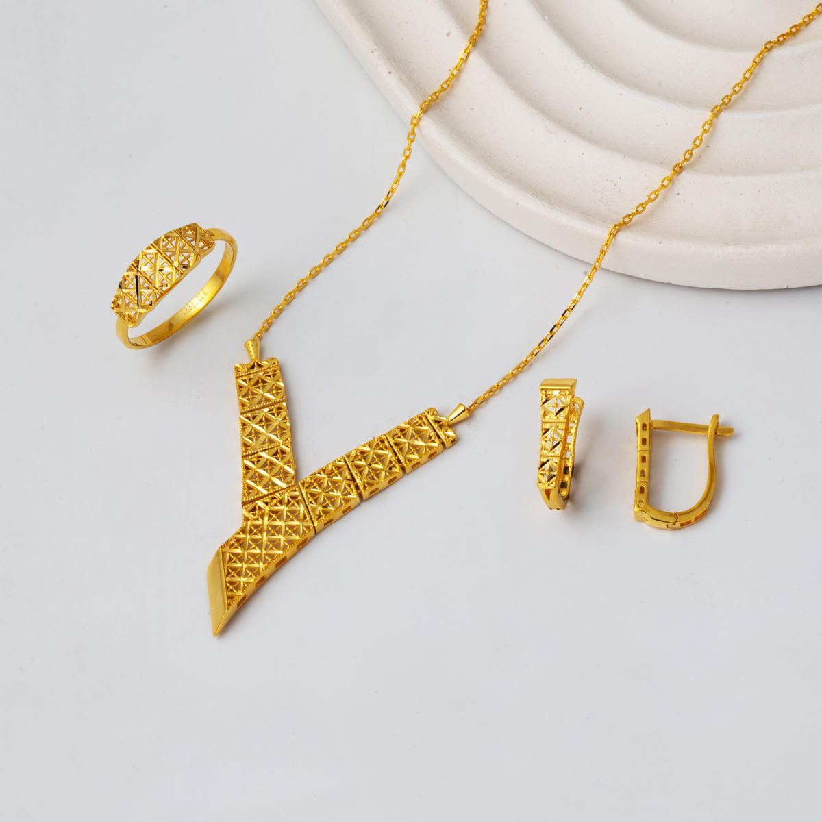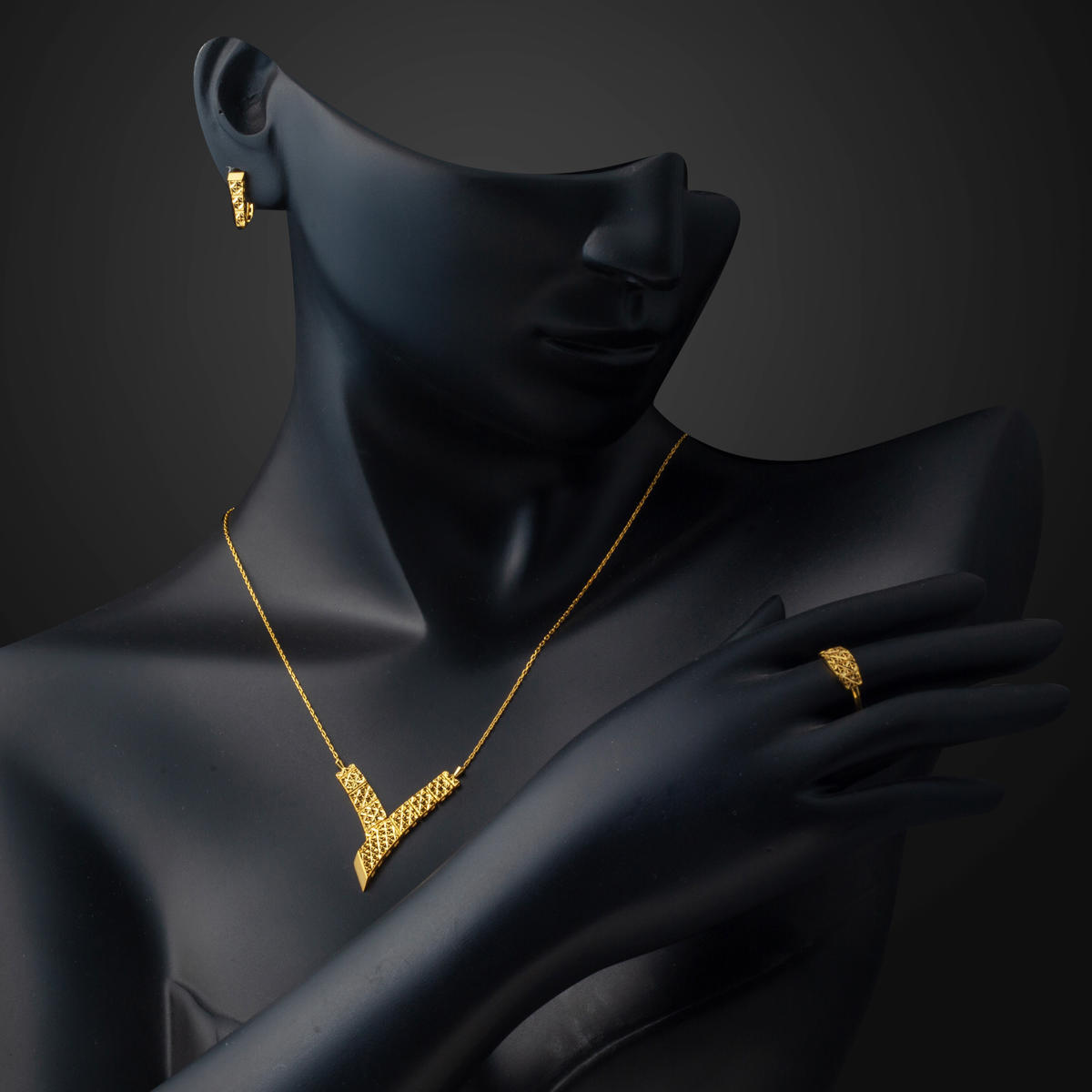 Zarafet ve Yatırımın Kusursuz Buluşması: Kolye, bileklik ve küpeden oluşan 22 ayar mini altın setimiz, hem özel günlerde hem de günlük kullanımda şıklığınızı tamamlayacak mükemmel bir seçimdir. 45 cm uzunluğundaki zarif zinciriyle her kombine uyum sağlayan bu set, sade ama etkileyici bir stil sunar. Yüzük boyu tercihinize göre belirlenebilir, dilerseniz bizimle iletişime geçerek en uygun boyutu seçebilirsiniz.