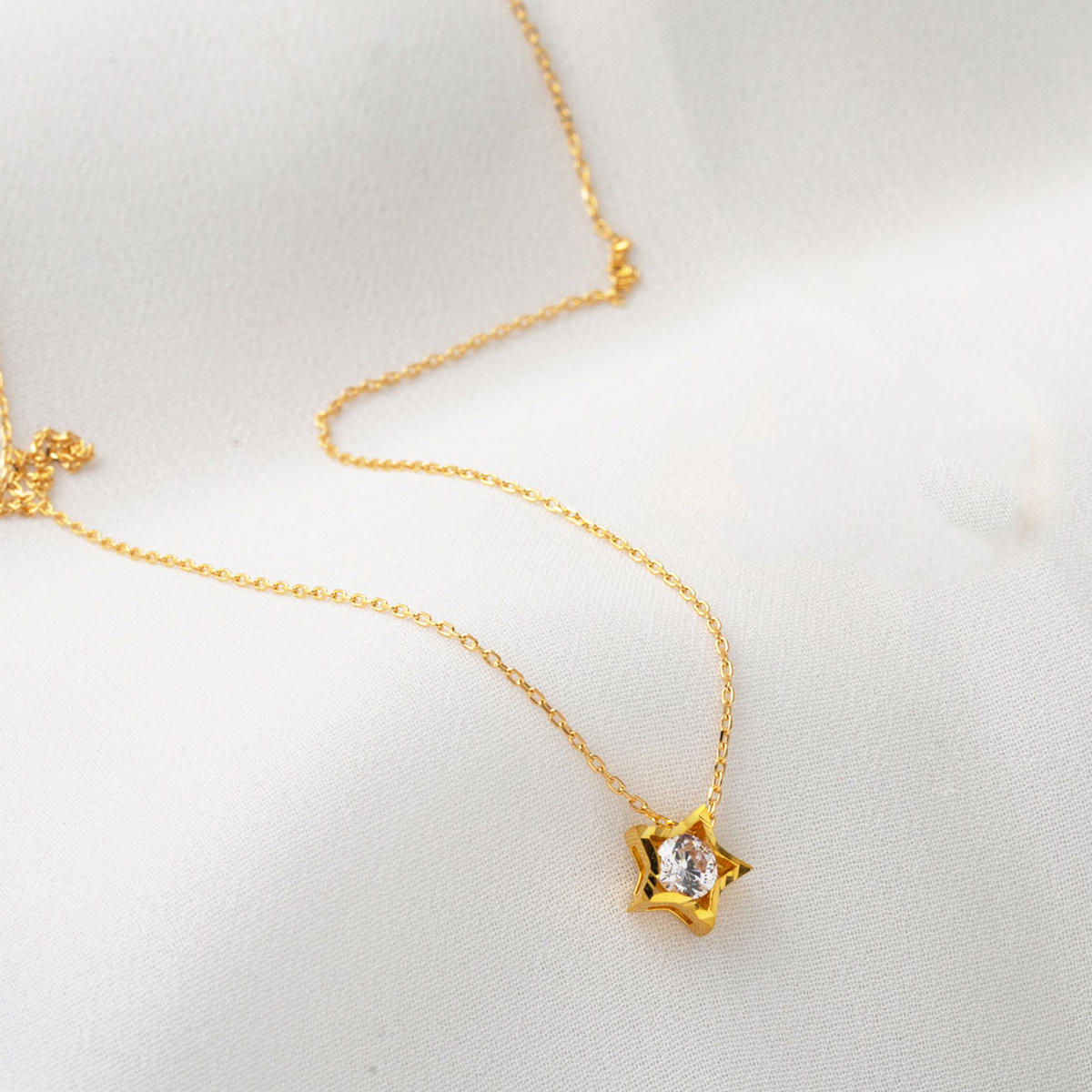 Yıldız Tek Taşlı 22 Ayar Altın Kolye