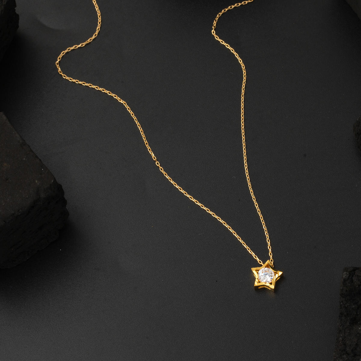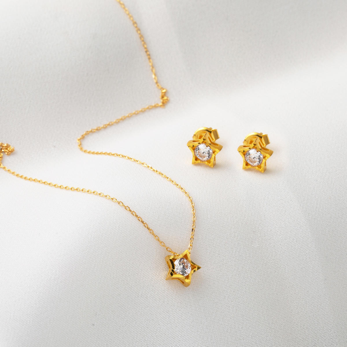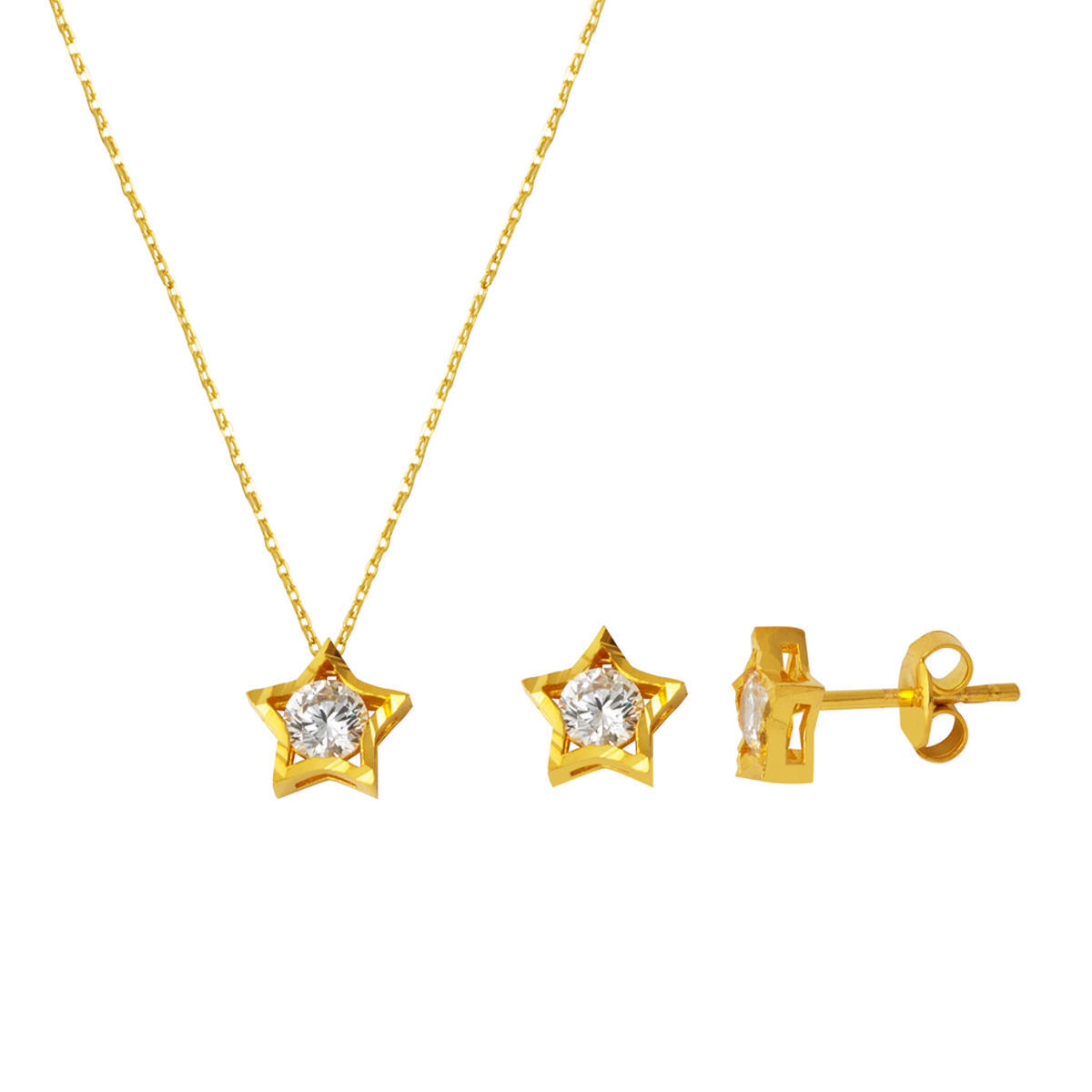 Yıldız Tektaşlı Kolye Küpeli 22 Ayar Altın Set